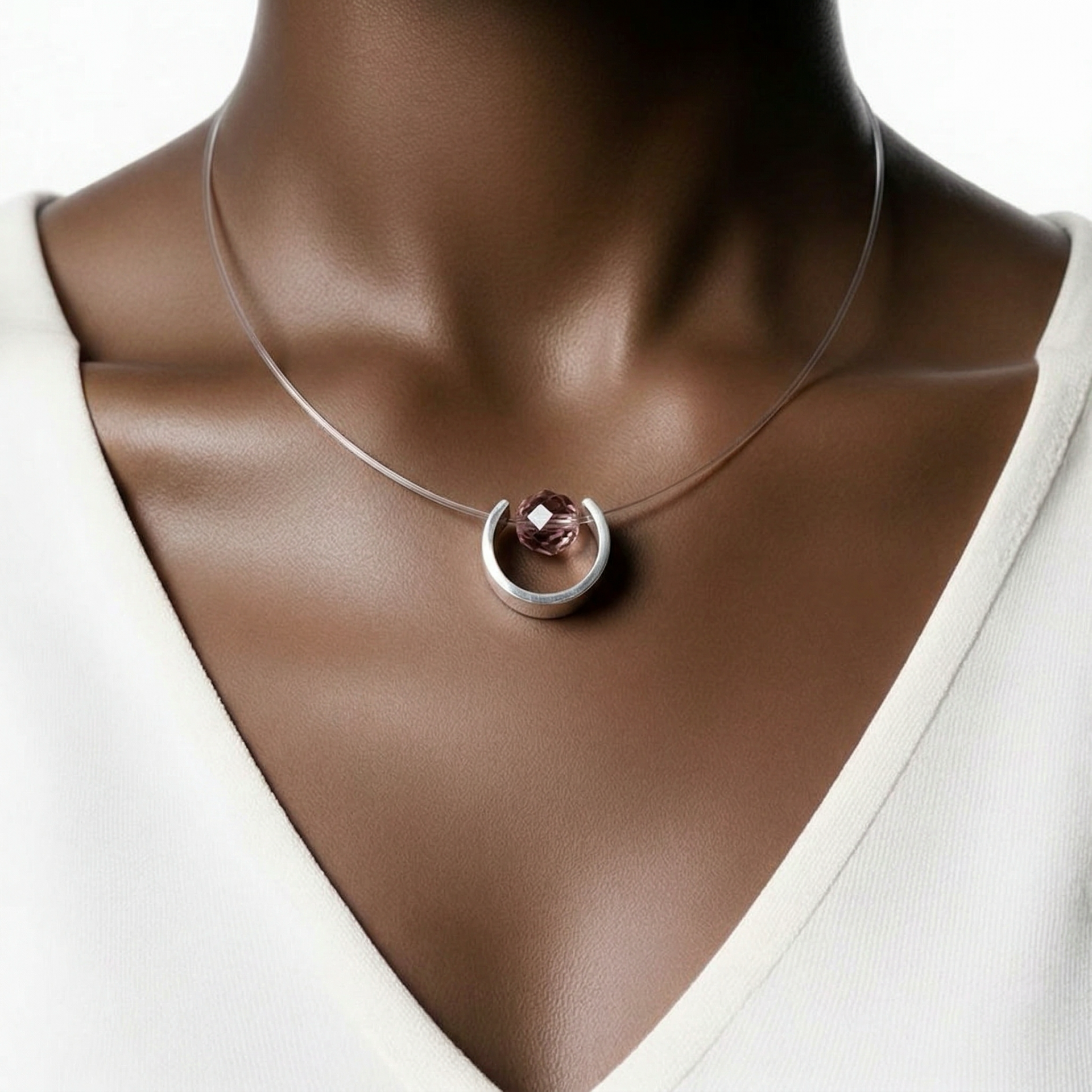 De hanger hangt aan een fijne, flexibele RVS-draad met een stevig slotje. Het ontwerp is licht, elegant en subtiel – perfect voor dagelijks gebruik of als romantisch accent bij een outfit.